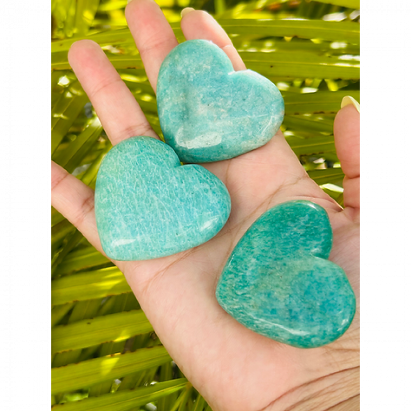 Embrace peace and clarity with our stunning, hand-carved Amazonite Hearts. We offer only the finest quality Amazonite, expertly shaped into smooth, comforting hearts that radiate tranquility. Metaphysically, Amazonite is a powerful heart chakra stone, believed to dispel negative energy, alleviate worry, and encourage compassion. Bring home one of these beautiful hearts to cultivate inner peace and harmonious relationships.