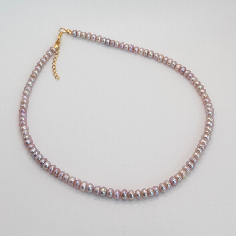 • Made with pink rondelle cultured freshwater pearls (5–6mm)