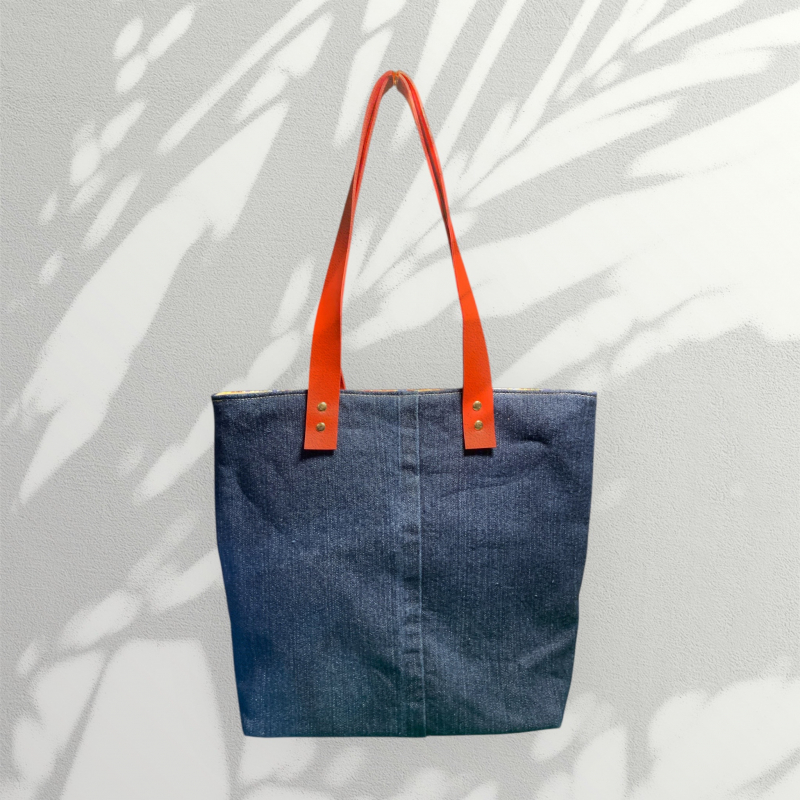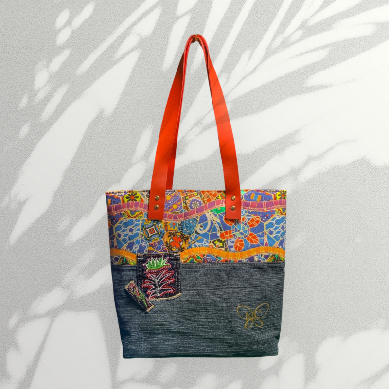 Where heritage meets sustainability. The Azulejo Tote is crafted with a custom printed fabric inspired by traditional Spanish tilework, bringing timeless artistry to modern style. Paired with upcycled denim and finished with durable leather handles, this tote blends eco-conscious craftsmanship with everyday elegance. Spacious, sturdy, and full of character, it’s the perfect statement piece for those who love carrying culture on their shoulder.
