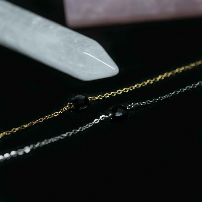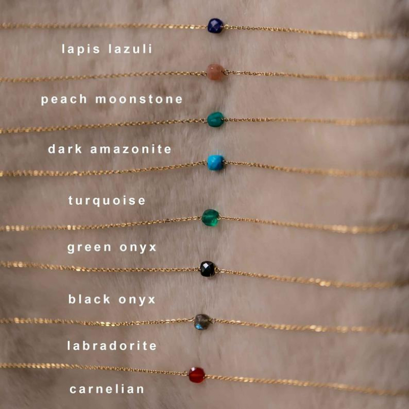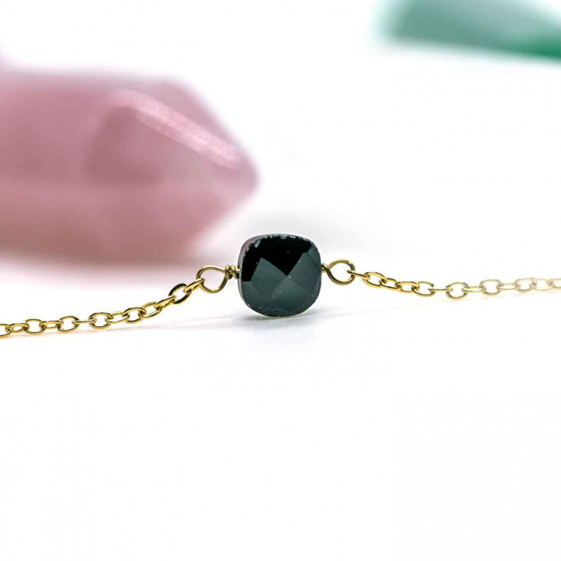 An effortless everyday necklace with a beautiful hand cut Black Onyx gemstone. Elegantly designed with a delicate 18k gold plated stainless steel chain.