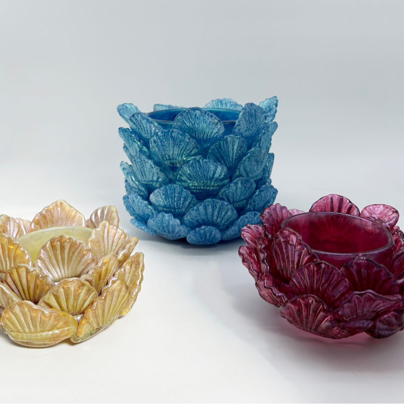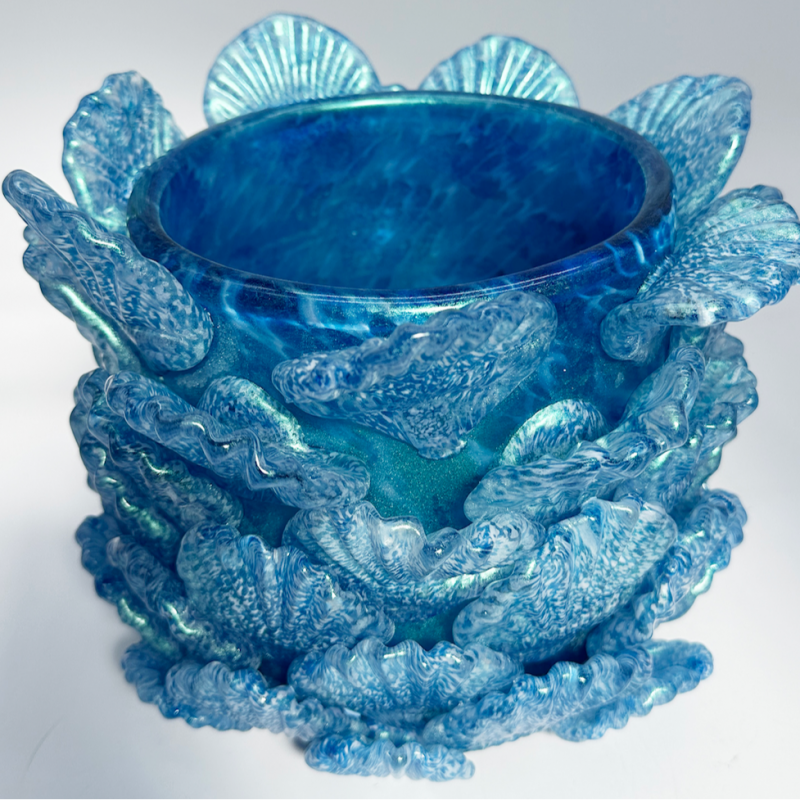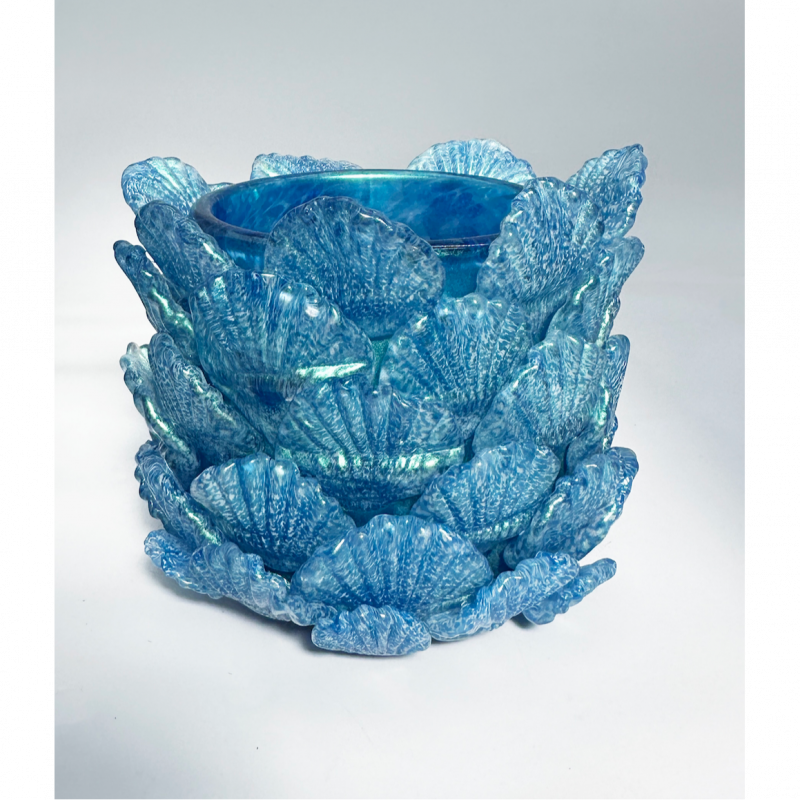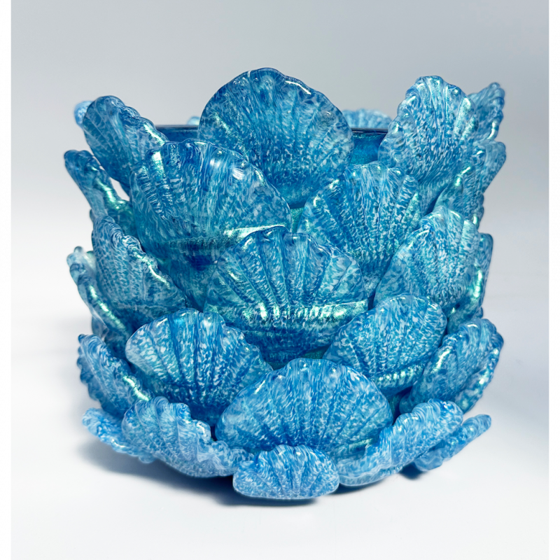 Hot sculpted glass shell bowl. Approximately 9 inches tall, 5 inches wide and 5 inches long. Hand made with love in 2025. One of one unique sculpture!
