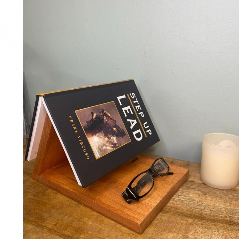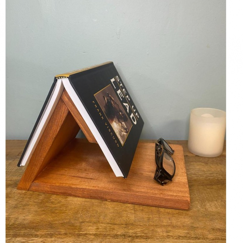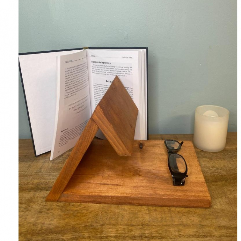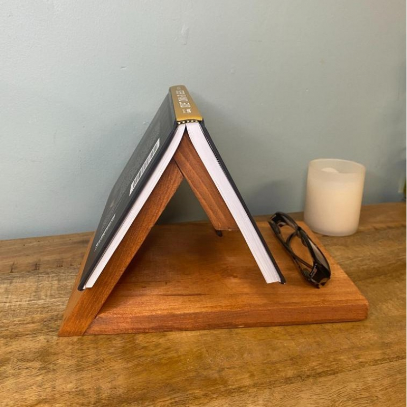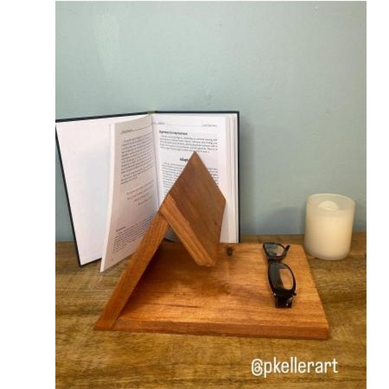A beautiful book rest made from pine designed to hold your page at any moment.