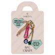 Bag Charm featuring Silver Plated Cuban Link Chain adorned with Evil Eye Glass beads and Jumbo Red Heart Pendant, Grey/Charcoal Nylon Cords.