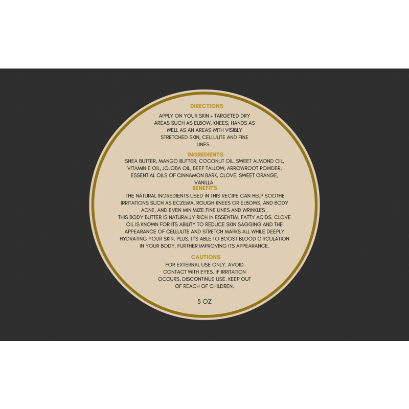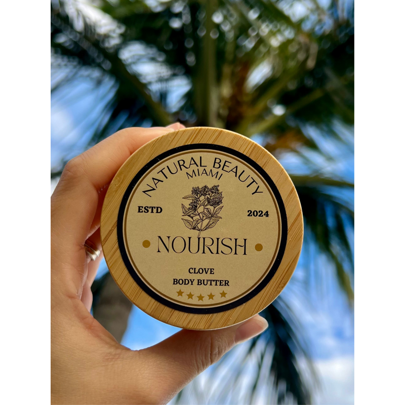 This body butter is naturally rich in essential fatty acids. Clove oil is known for its ability to reduce skin sagging and the appearance of fine lines, cellulite and stretch marks all while deeply hydrating your skin. Plus, it's able to boost blood circulation in your body, further improving its appearance.