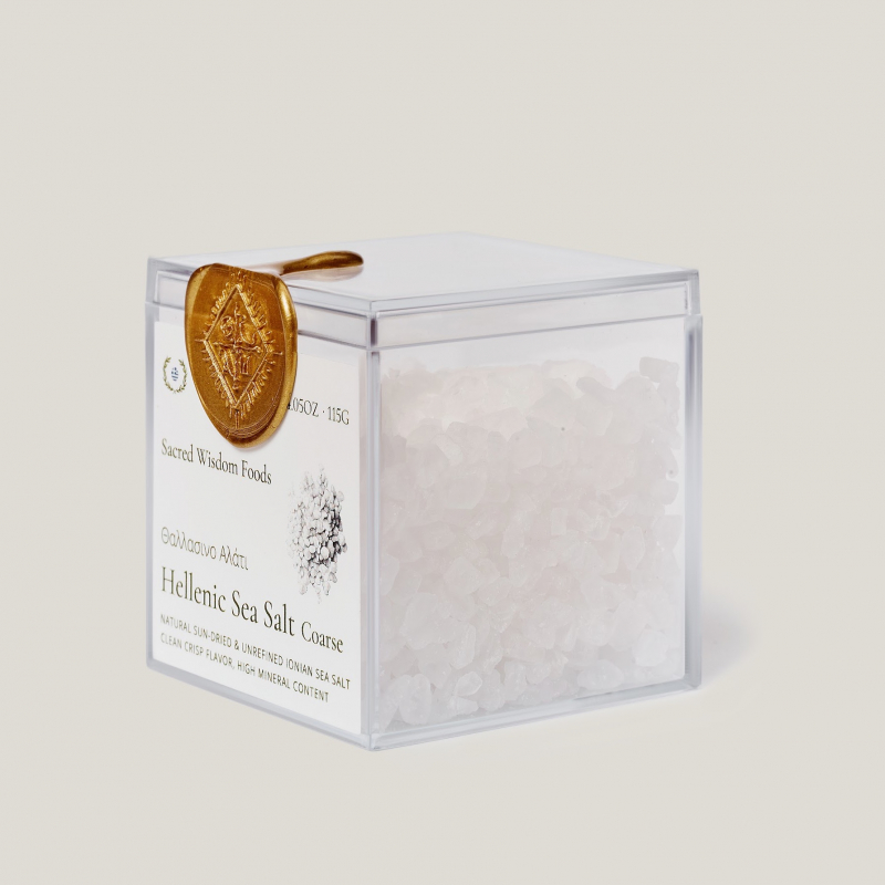 This coarse sea salt is harvested from the sunlit shores of the Ionian Sea, where pure seawater slowly evaporates under natural conditions. Unrefined and rich in trace minerals, it offers a clean, briny intensity and satisfying crunch. Ideal for finishing dishes or rubbing into ingredients by hand, it brings texture, purity, and elemental flavor to your kitchen—just as nature intended.