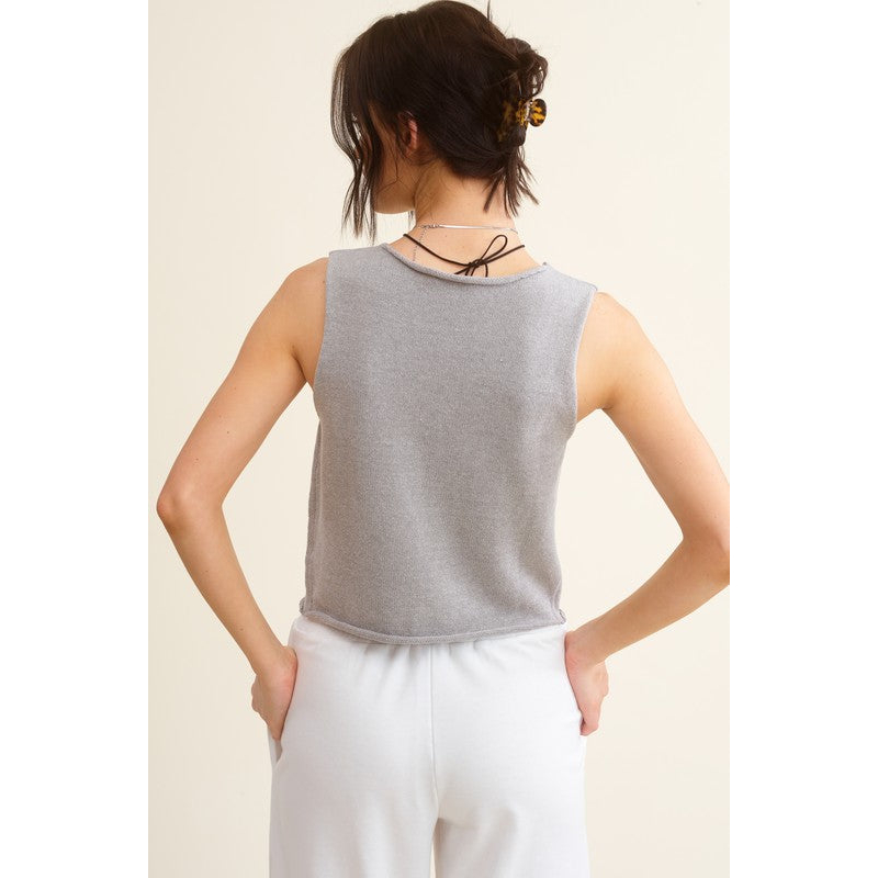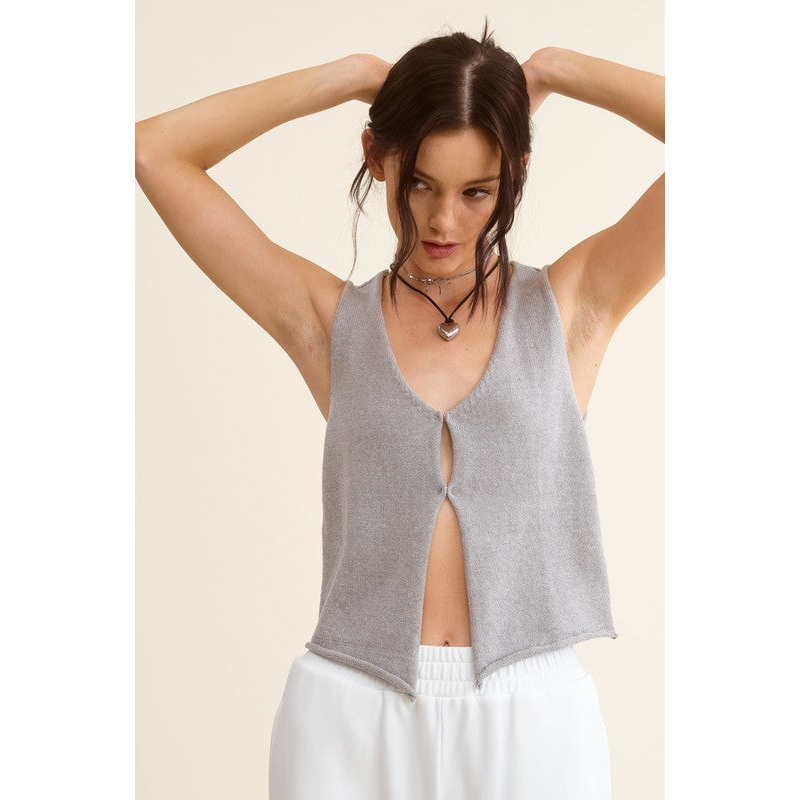 Crafted for a relaxed fit with stretchable, soft yarn, this piece features a trendy hook and eye closure, a plunging V-neckline, and a raw edge hem. Its regular length makes it an ideal staple for year-round wear.