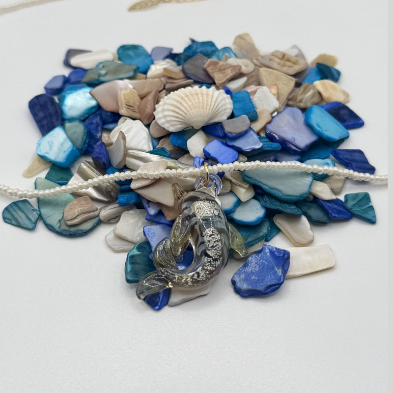 Do you feel like your style needs a splash of oceanic charm? Keep your look fresh and unique with the Cream Dolphin Lampworked Glass Necklace. Featuring a stunning dolphin motif crafted from navy-hued lampworked glass, this necklace is accented with shimmering details and finished with a sleek adjustable clasp. Both playful and elegant, it’s a timeless piece inspired by the beauty of the sea.