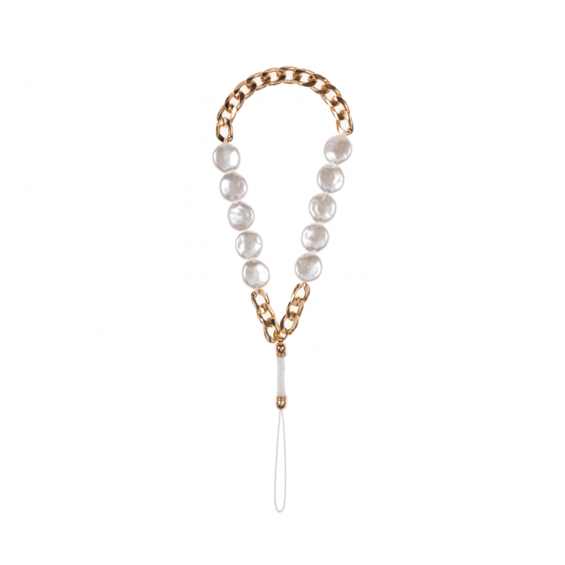Phone Charm Wristlet featuring 18k Gold Plated Brass Cuban Links + Pearls