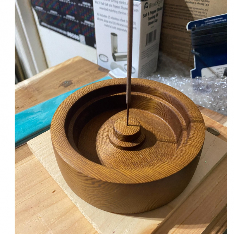 A beautiful incense holder! Approx. 5" across, 2" tall. Handturned in various exotic woods.
