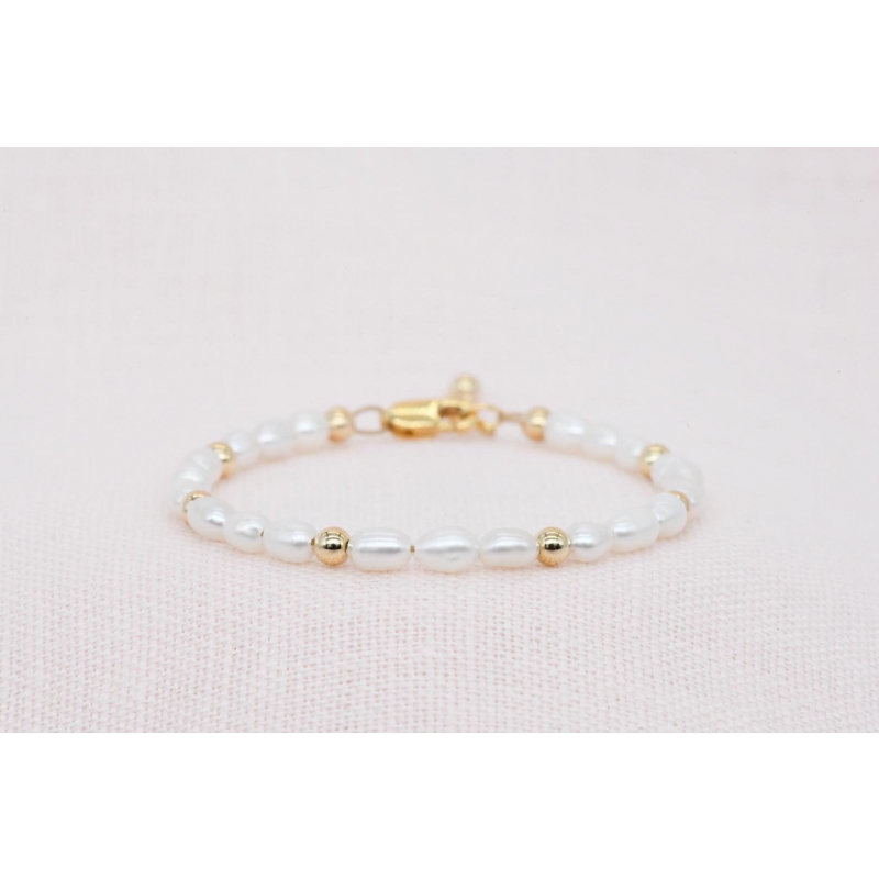 Delicate, graceful, and effortlessly timeless. The Amelia Bracelet with Rice Pearls features dainty freshwater rice pearls, each carefully chosen for its soft luster and elongated shape. Paired with gold-filled beads in a charming three-pearl, one-gold pattern, this bracelet is a beautifully balanced piece of classic elegance.