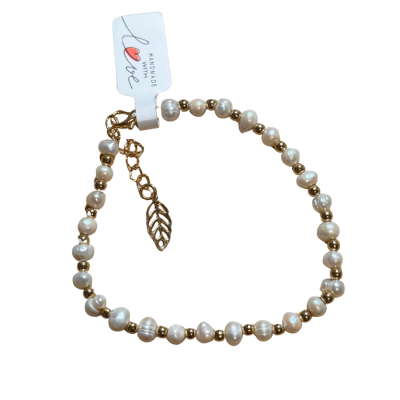 The Golden Shore Bracelet pairs natural freshwater pearls with smooth gold accents — a balance of texture and warmth inspired by light meeting the tide. Each pearl carries its own subtle shape and luster, making every bracelet quietly unique.