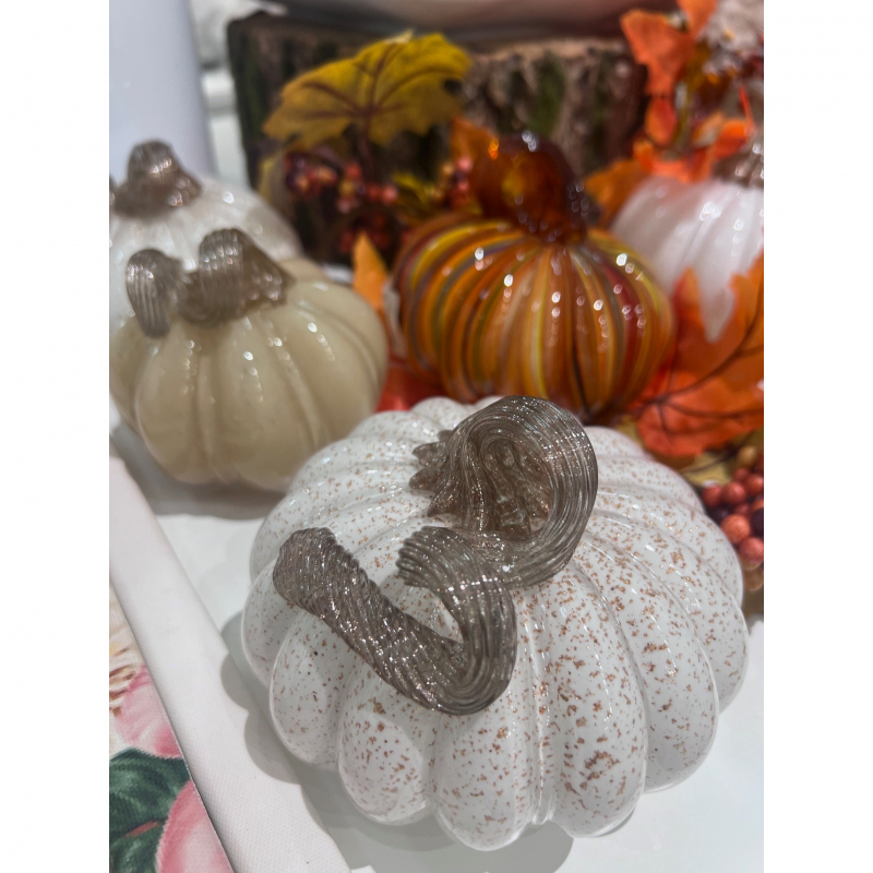 Elevate your Thanksgiving table or fall holiday display with the timeless beauty of our Handblown Glass Pumpkins. Crafted with precision, each pumpkin features unique swirls of vibrant autumn hues and intricate stem details, making them perfect as standalone décor or part of a seasonal centerpiece. Durable and elegant, these artisanal treasures add warmth and charm to any setting, celebrating the magic of the harvest season.