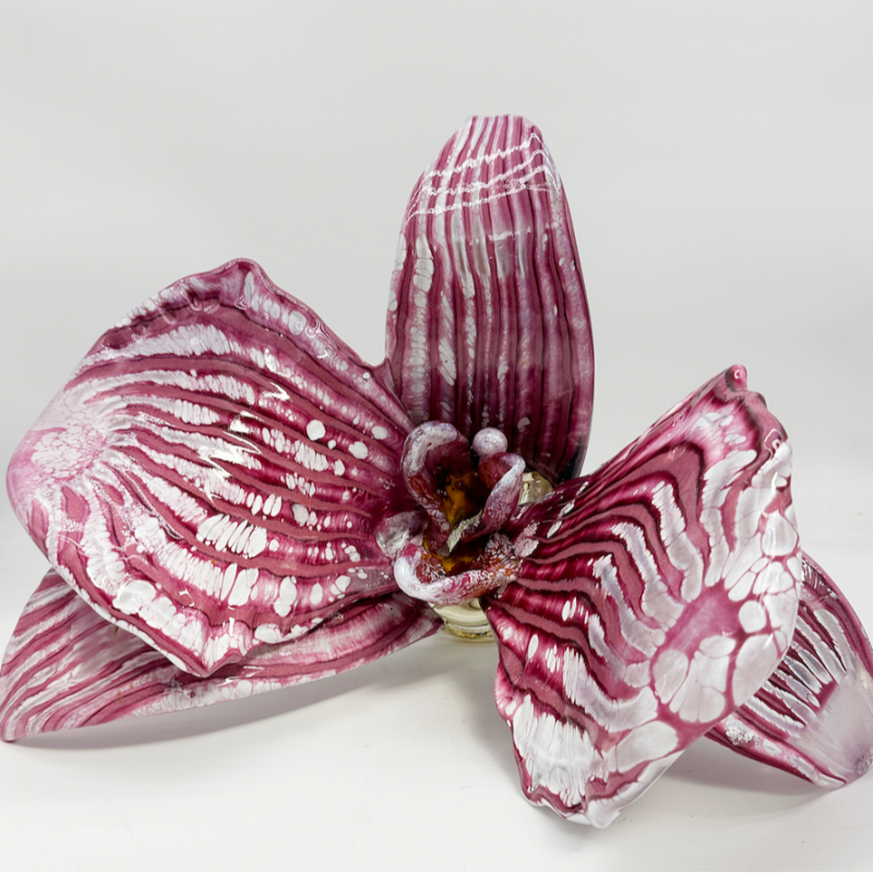 Large orchid made from hot sculpted glass.