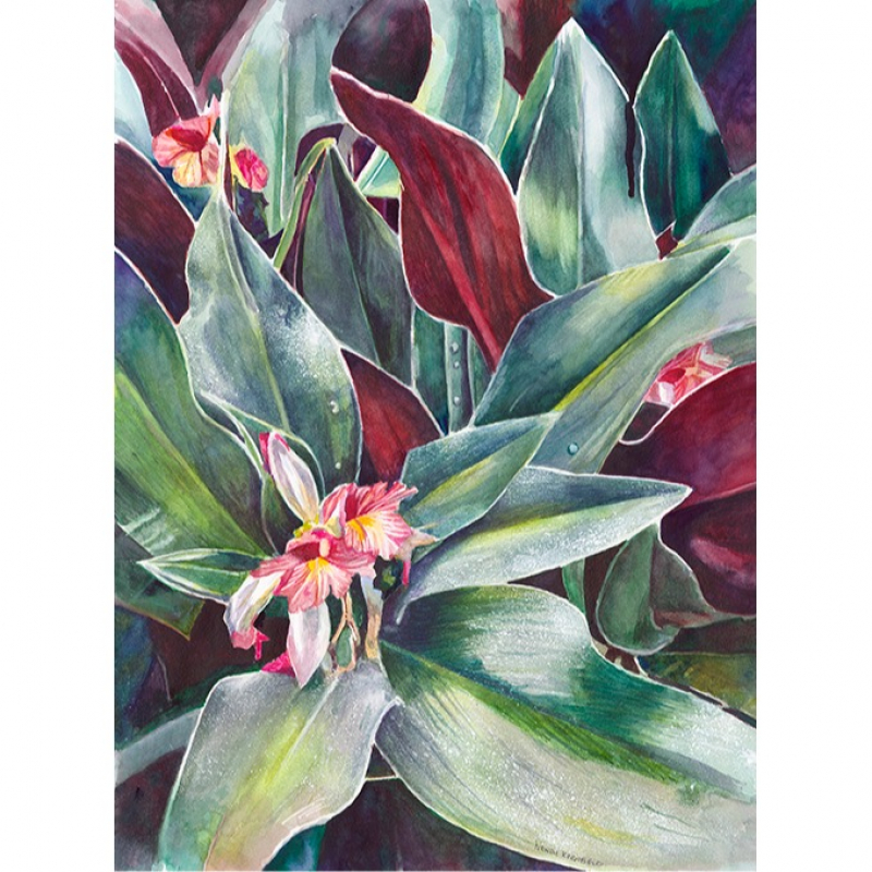 Lili's Ox Blood Costus 11" x 15.25 print in a 16 x 20 archival double mat. $45. This is on fine art German watercolor paper, and reduced about 50% from original price.