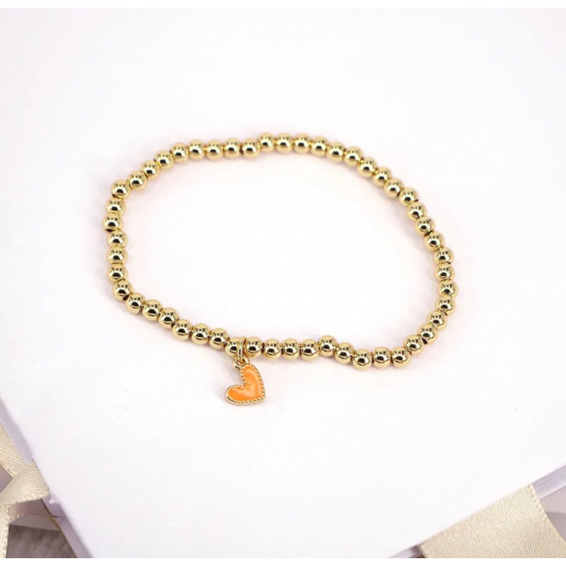 Elevate your style with this timeless gold beaded bracelet, featuring a delicate enamel heart charm. The high-quality gold-plated beads add a touch of sophistication, while the heart charm offers a chic and playful accent.