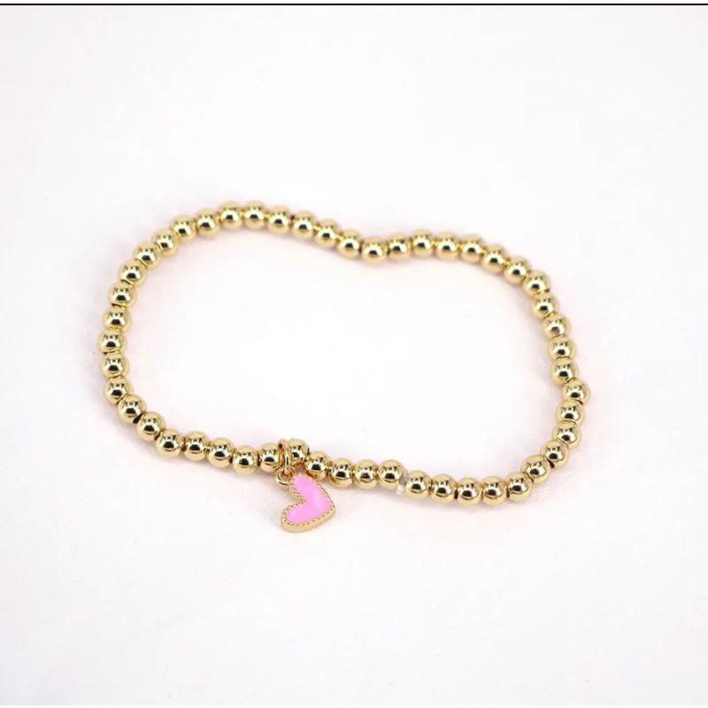 Elevate your style with this timeless gold beaded bracelet, featuring a delicate enamel heart charm. The high-quality gold-plated beads add a touch of sophistication, while the heart charm offers a chic and playful accent.