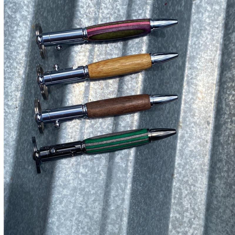 These Mini Bolt Action pens are made from various hardwoods from across the world. Every pen is hand turned on my lathe and carefully finished with a protective wax coating to prevent the wood from scratching.