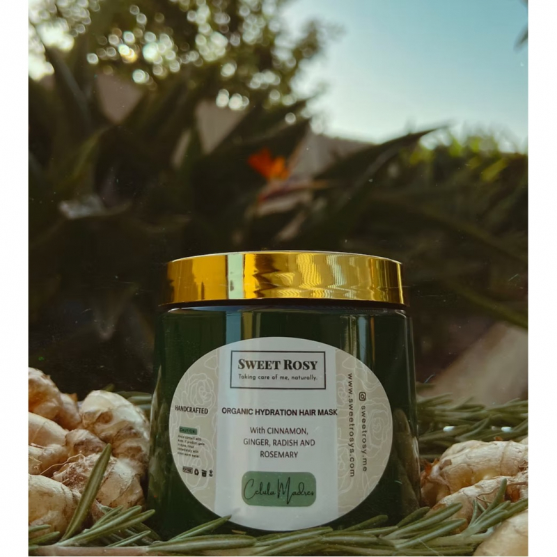 Indulge in our luxurious Organic Hydration Hair Mask, available in 16oz. Handcrafted organic célula madre and a nourishing blend of locally-sourced ingredients – cinnamon, ginger, radish, and rosemary – our mask offers a deeply hydrating experience for your strands. Immerse your hair in this rich treatment, replenishing moisture and enhancing overall hair health.
