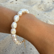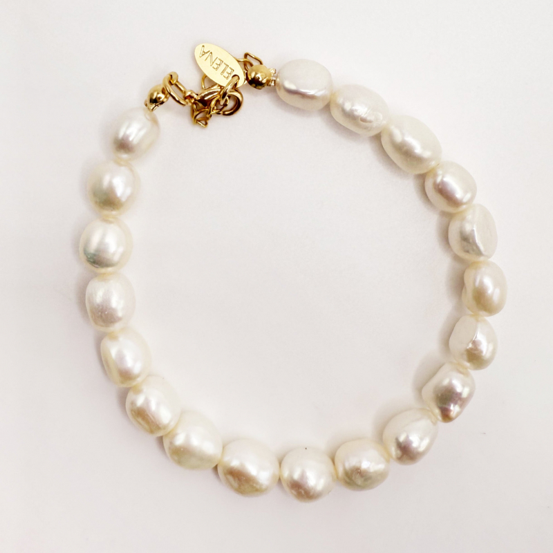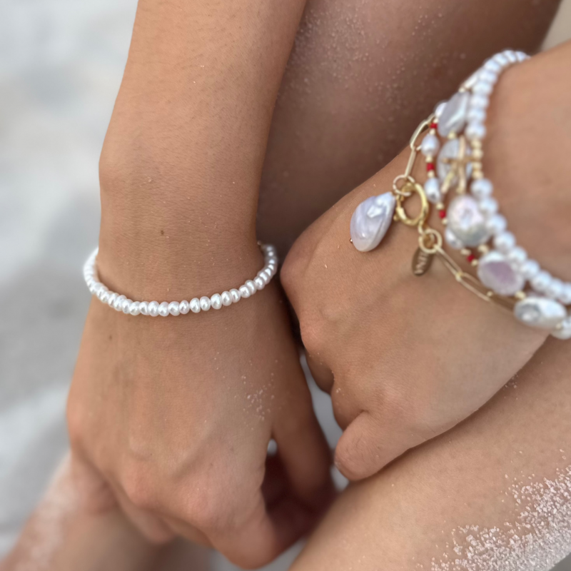 A timeless bracelet inspired by the calm beauty of the shore. Made with 7–8 mm freshwater pearls and finished with a 1" extension chain for the perfect fit.