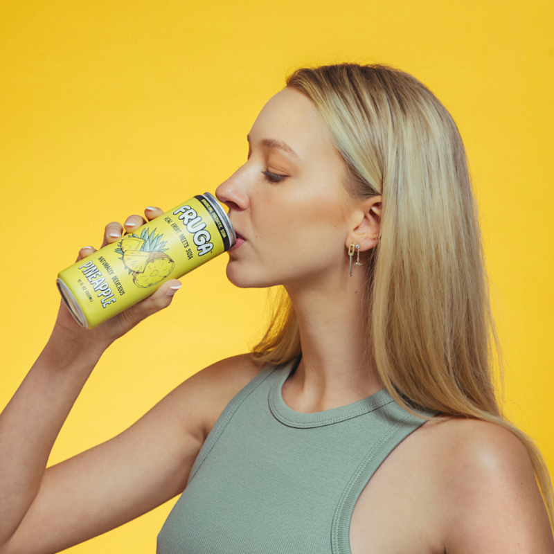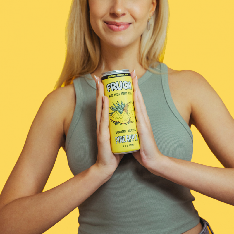 FRUGA Fruit Super Soda: A refreshing pineapple soda that’s bursting with real fruit flavor, plant fiber, and essential vitamins, crafted to promote gut health and enhance wellness with every sip.