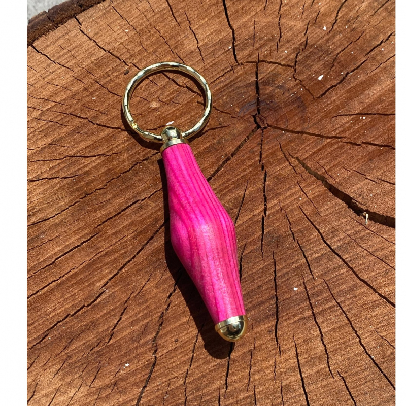 Pink SpectraPly wooden keychain! This hand turned piece is made of premium hardwood, laminate and veneer glued together to form the wood. A beautiful addition to your keys or purse. Approx. 4" long.