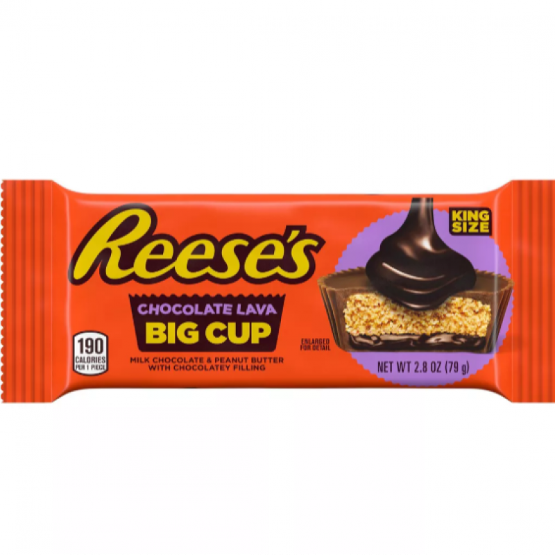 Chocolatey. Gooey. Goodness. This REESE’S Chocolate Lava Big Cup features the classic combo of rich peanut butter and creamy milk chocolate, now erupting with a decadent molten chocolatey layer that oozes with every bite.