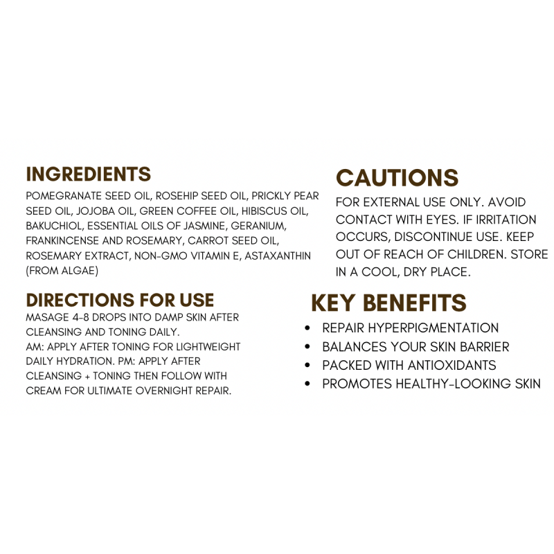 HOW TO USE: Massage 4-8 drops into damp skin after cleansing and toning daily. AM: Apply after toning for lightweight daily hydration. PM: Apply after cleansing + toning then follow with cream for ultimate overnight repair. Note: May stain light colored clothes if over applied.