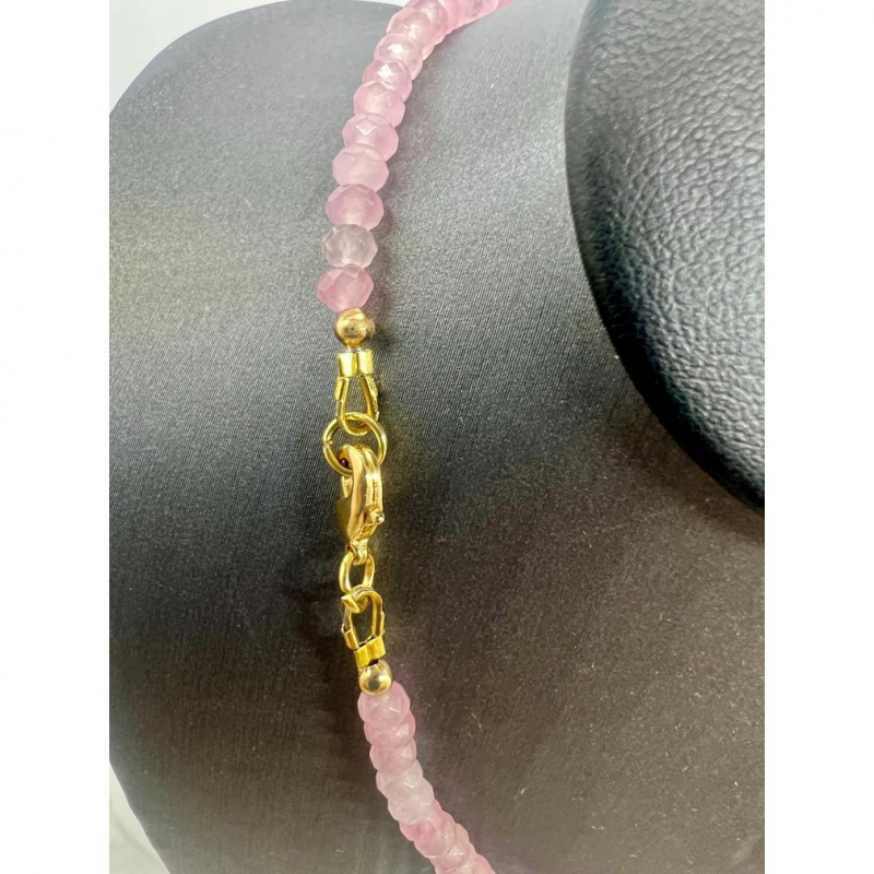 Adorn yourself with this exquisite handcrafted rose quartz necklace, designed for elegance and everyday sophistication. Made with 4mm faceted rose quartz beads, accented by durable stainless steel findings, and completed with a stunning oval pendant with micropavé detailing, this piece radiates soft, feminine charm.