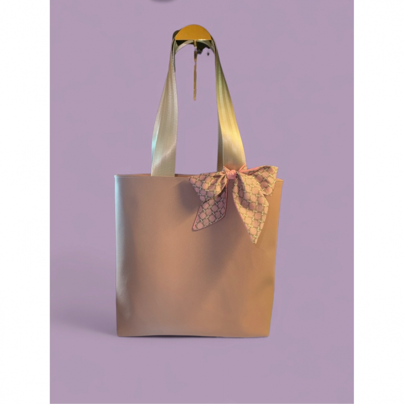 Elevate your everyday with the Saffi Luxe Tote - where structure meets sophistication. Crafted from premium saffiano faux leather, this timeless tote offers a sleek silhouette and a refined finish. Inside, a custom cotton lining featuring our signature logo adds a personal touch, while the spacious interior keeps your essentials beautifully organized. Finished with a removable scarf bow for a hint of charm and versatility, the Saffi Luxe Tote is your go-to for polished days and chic getaways.
