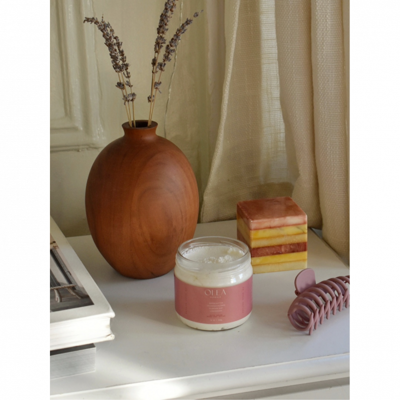 This body butter is our secret weapon against dull, aging skin. Made from all-natural mango butter, this formula glides on and quickly absorbs to add moisture without the sticky feeling synthetics leave behind.