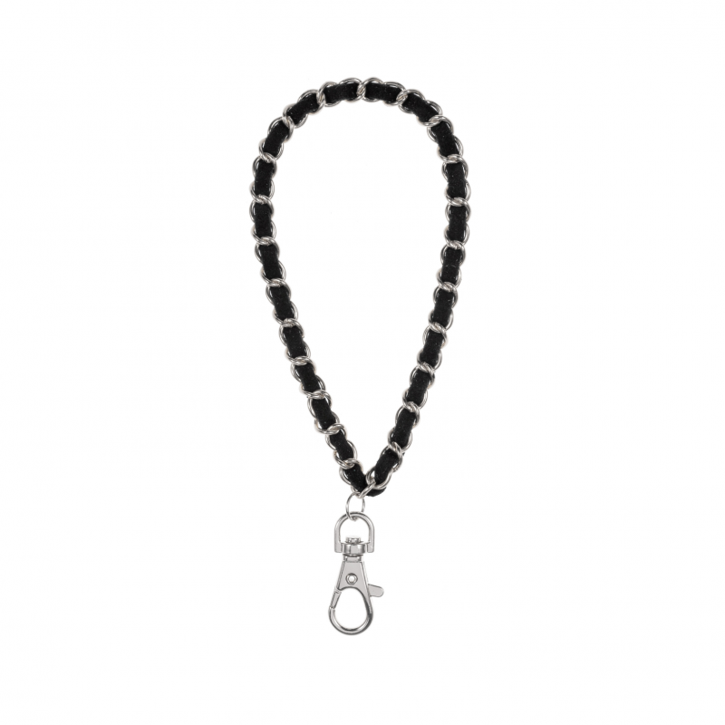Phone Wristlet featuring Silver Plated Chain w/ 100% Black Suede Woven Throughout. Turn your phone into a wearable accessory that keeps you hands-free... think of it as a bracelet for your cell phone!