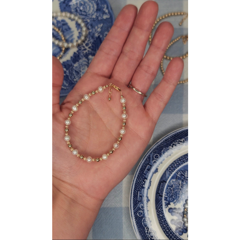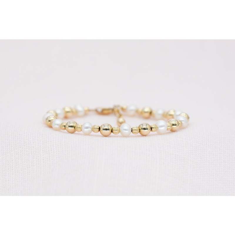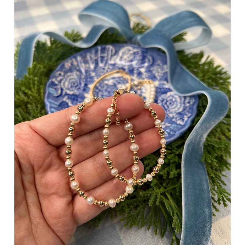 The Clara Bracelet showcases lustrous semi-round genuine pearls, beautifully paired with corrugated round gold-filled beads and our signature gold-filled accents. The perfect blend of texture and shine, this delicate piece adds a touch of sophistication to any jewelry collection.