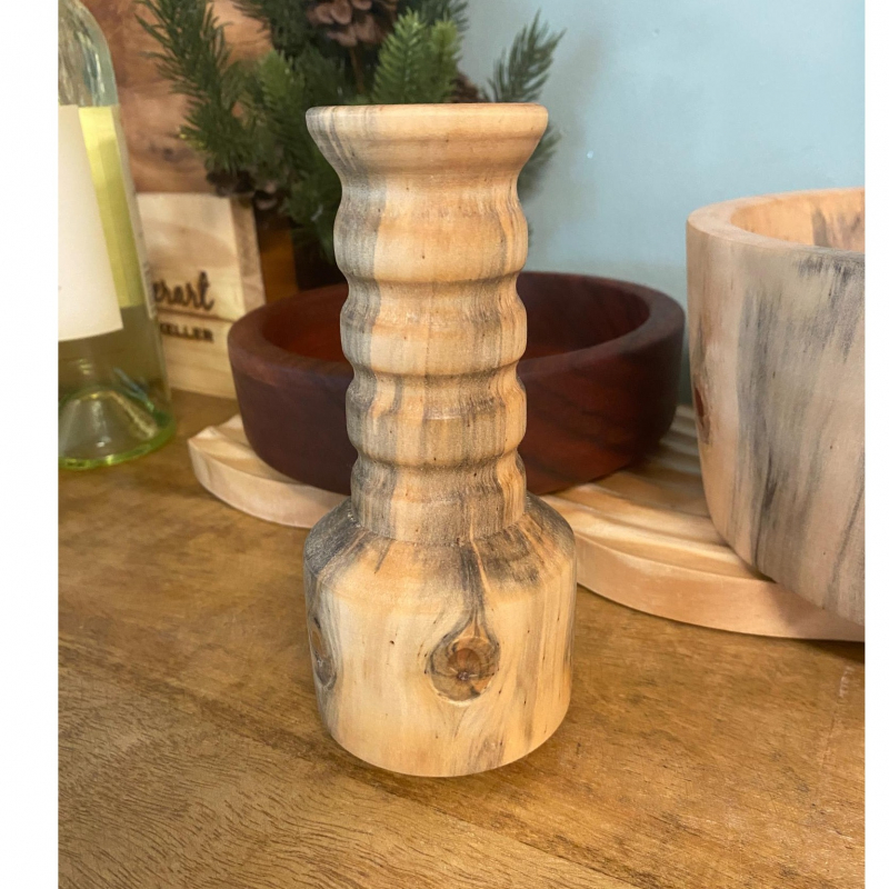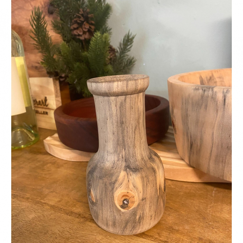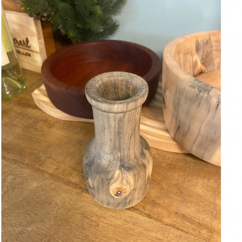 Beautiful, Hand turned vases made from Norfolk Island Pine wood (and others) found in the hammocks! 6" tall.This wood has to be cut and turned at just the right time. It has beautiful spots that look like peacock feathers.