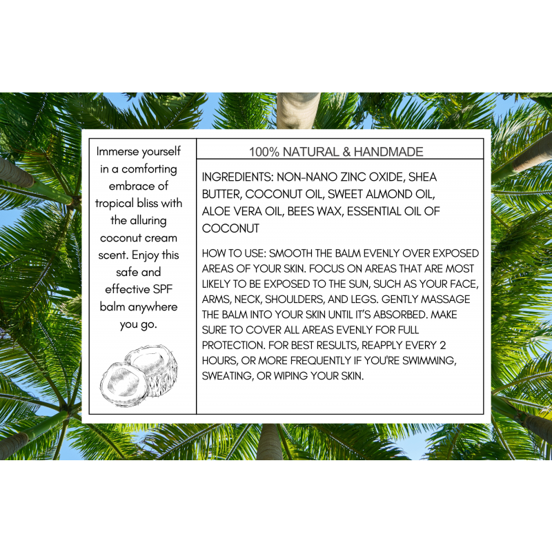 🌿This all-natural, kid-friendly Zinc SPF Balm offers effective sun protection while nourishing and soothing the skin. Formulated with non-nano zinc oxide, this balm creates a physical barrier against harmful UV rays without absorbing into the skin. Enriched with coconut oil, shea butter, and almond oil, it deeply moisturizes, leaving the skin soft and hydrated. Aloe vera oil and vitamin E oil provide additional soothing properties, making it perfect for sensitive skin. This balm is free from harmful chemicals and is safe for the whole family to use!